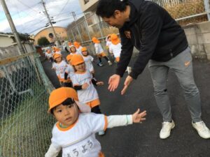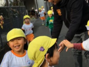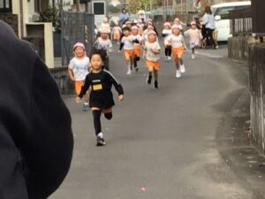 今日は寒くなる予報でしたが子どもたちが園庭に出てくると太陽が燦々と登り絶好のマラソン日和となりました。