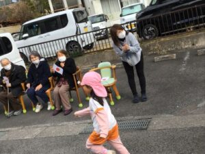 子どもたちを応援するために「あしたのかぜ」の利用者の方々も出てきてくださいました。応援の合間に「子どもたちをみると寒さも吹き飛ぶね」と嬉しそうに話して下さっていました。