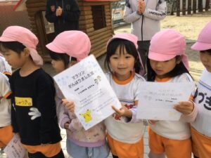 途中で転んでしまうお友だちがいましたが、みんなの声援をうけて諦めずに最後まで走りぬくことが出来ていて感動のマラソン大会でした。